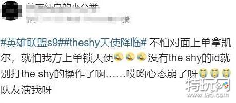 玩家“哭诉”,不怕对面上单拿凯尔,就怕我方上单锁天使,没有TheShy的id就别打TheShy的操作……自称被演得心态都崩了。