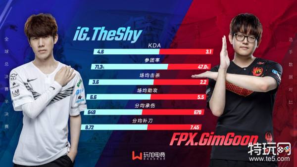 上单方面,杀气腾腾的TheShy对上抗压王GimGoon。从数据上来看,TheShy优势明显,除了分均承伤略低于GimGoon之外,其他方面都有所领先,并且TheShy的数据在S9正赛所有上单中也名列前茅。