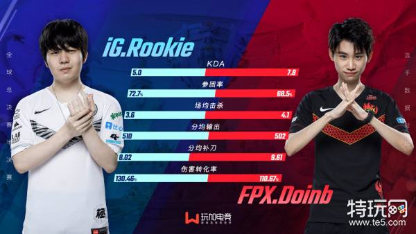 中单的对决是本场比赛的焦点,在数据方面,双方难分伯仲。KDA、场均击杀和分均补刀是Doinb领先,而参团率、分均输出和伤害转化率则是Rookie更占优势。