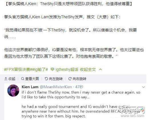 他只是太想赢了 拳头撰稿人Kien为Theshy发声
