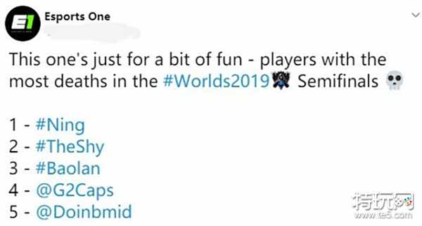 S9半决赛已经过去几天了,近日一家外国媒体统计出了一份关于S9半决赛各选手死亡总次数的榜单。