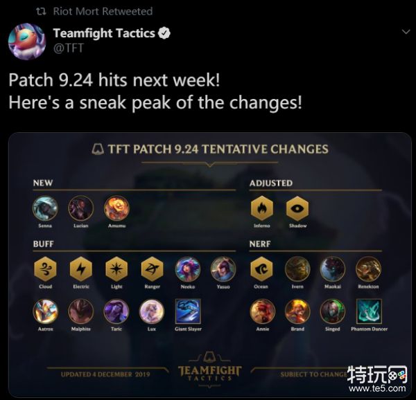 此前,LOL云顶之弈的官方推特公布了一些近期9.24新版本的“小”改动: