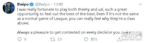 在比赛结束之后,Bwipo在推特中发表了感想: