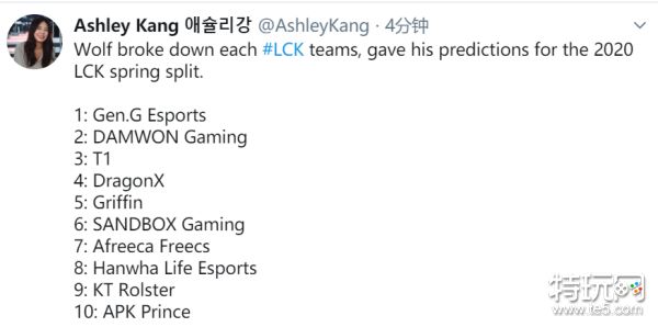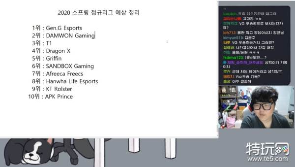 Wolf在自己直播的时候给出了他自己的2020LCK春季赛排名预测: