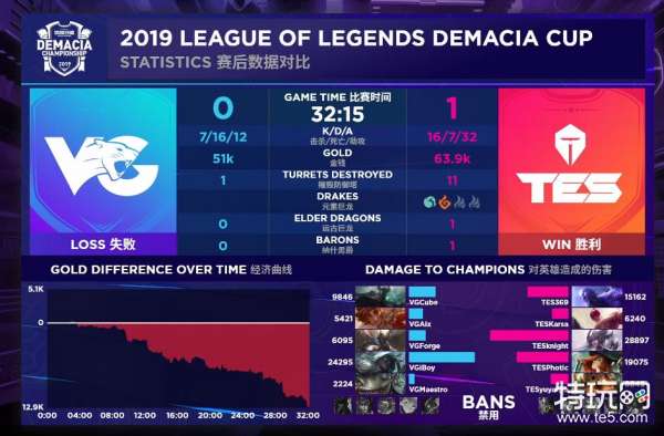 [16:40] VG击杀锤石后拿到峡谷先锋,之后召唤峡谷先锋撞下TES中路一塔,鳄鱼强行大招清兵被日女控住连环控接上,鳄鱼残被击杀