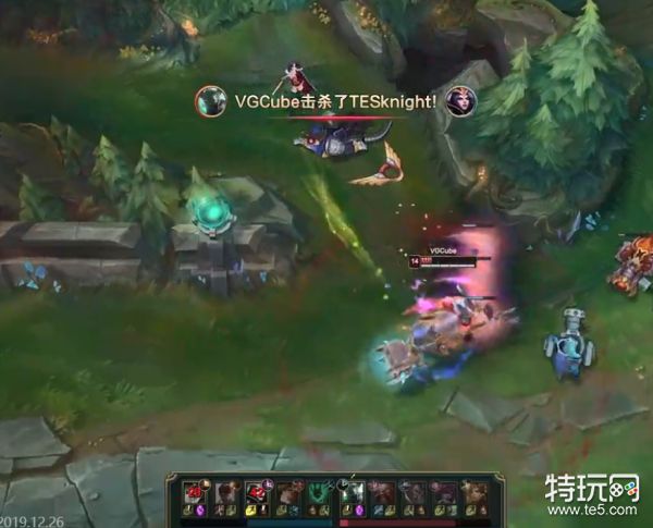[06:45] VG下路推线将兵线推入TES下路塔,酒桶来到下路配合下路组合越塔击杀女枪,于此同时TES上野想要从上路找回场子,但是铁男在塔下太顶,扛住了两人的伤害,卢锡安赶到击杀鳄鱼,铁男击杀残血逃脱的瞎子