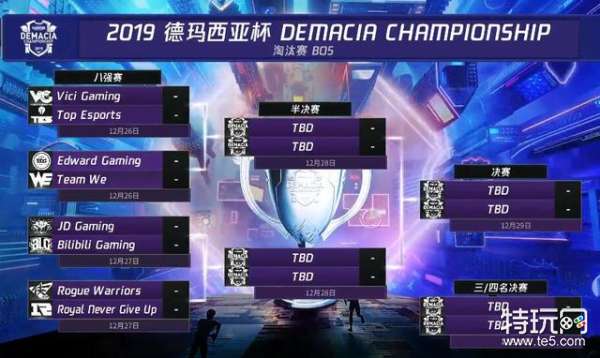 2019年德玛西亚杯的小组赛阶段,已经在12月22日晚上顺利结束了,20支LPL和LDL队伍分成四个小组进行竞赛,最终决出了8支晋级八强赛阶段的参赛队伍。除了完全体IG和FPX战队没有登场,这次德杯比赛基本上就是各大队伍下个赛季的阵容名单了,我们也是看到了很多爆冷的对局出现,还有一些先前成绩垫底的队伍一鸣惊人。接下来,让我们一起来看看八强赛的对战情况。