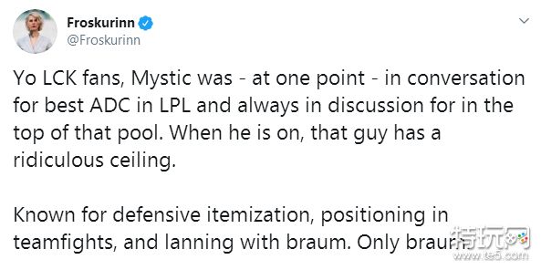 LCK的粉丝们,Mystic在LPL的时候一直被论为是在最顶级的ADC选手之列,他在比赛中有着非常夸张的上限。