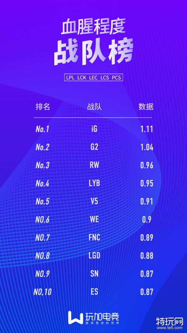五大联赛战队血腥程度:iG位居首位 V5进入前五