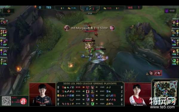 WE打野早早地赶过来帮鳄鱼建立优势,369孤身一人。即使后面凯南拿到人头和助攻也都是靠团战打出来的,对线上完全是被打野和上单压制的。