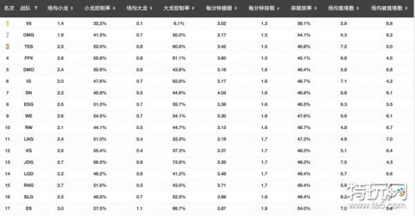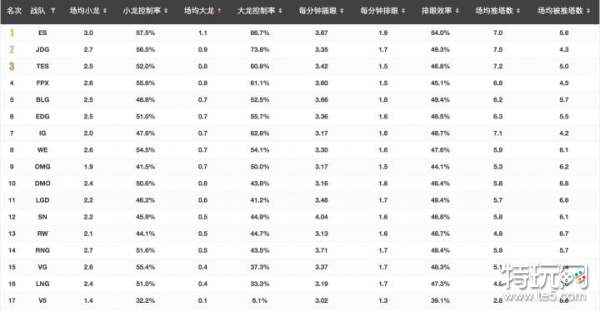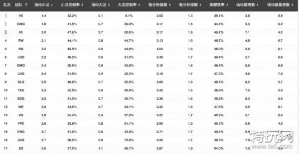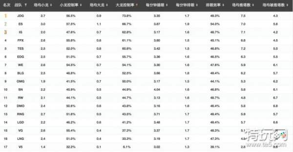IG场均小龙数是联盟第三(2.0),控制率是联盟第六(47.6%);场均大龙数是联盟第四(0.7),控制率是联盟第3(62.8%)