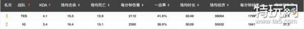 IG在常规赛中的分均伤害是LPL第一,场均击杀是LPL第二,场均时长是LPL第一(最快)。TES在常规赛中的分均伤害是LPL第二,场均击杀是LPL第三,场均时长是LPL第九。