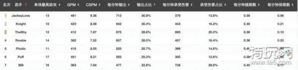 我相信这幅图或许更能说明问题,除去Jackeylove的数据来看,TES原先的上中AD输出占比分别为:22.6%,30.4%,25.7%;IG的上中AD输出占比分别为:28.6%,28.0%,25.3%。IG的三C输出差距并不大,反观TES,中单和AD之间差了5个百分比,中单和上单更有8个百分比的差距。