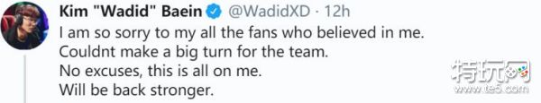 很遗憾辜负了那些相信我的粉丝。我没有能为队伍挽回局面。没有借口,这全都怪我。我们会回来并且变得更强。