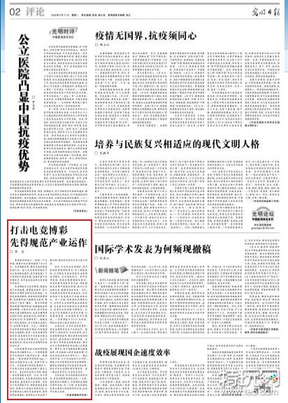 导读:光明日报发文批电竞博彩 要打击得先规范产业