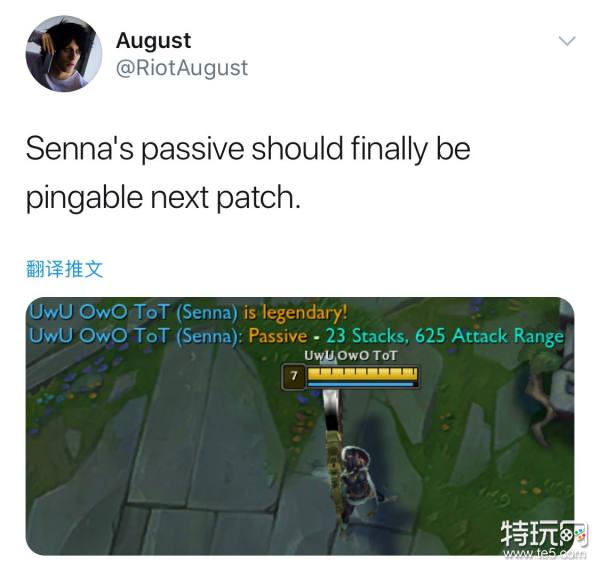 会在下一个版本(10.10版本)为赛娜提供一个显示被动情况的指示器。