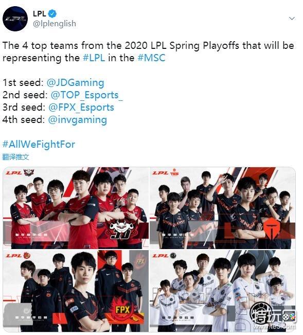 LPL英文官推今日更新,季后赛前四的队伍将代表出征参加季中杯。