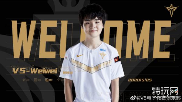 V5官方微博发文官宣 欢迎Weiwei加入V5担任打野