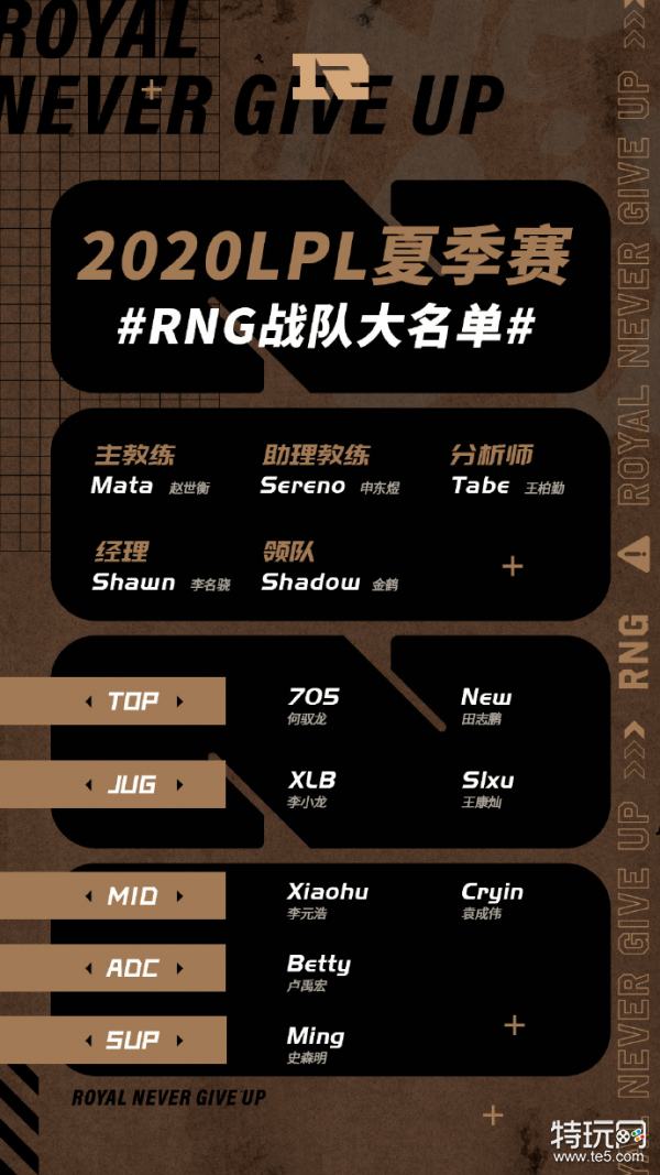 2020LPL夏季赛RNG战队大名单公布 Uzi不在名单内