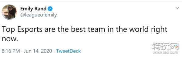 ESPN女记者更新推特 TES是目前世界上最强的战队