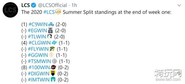 LCS第一周结束,目前各支队伍的积分排行如下:C9、EG、TL领衔,TSM输赢各一场,而目前垫底的队伍是100、DIG和IMT。