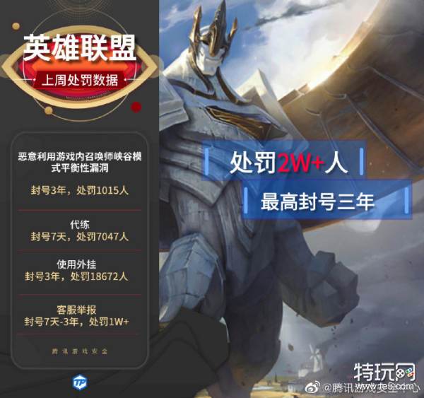 导读:LOL上周处罚共2万多人 恶意利用漏洞最高封3年