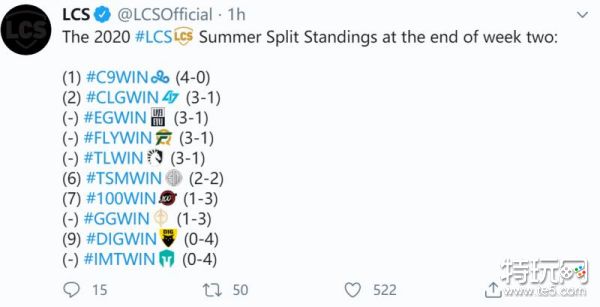 导读:LCS夏季赛第二周积分排行总结 C9依旧保持全胜