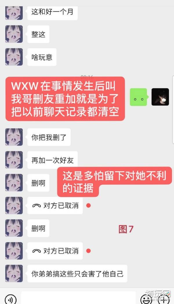 (图7是WXW要求我哥删掉和她的聊天记录以免对她造成不利影响)