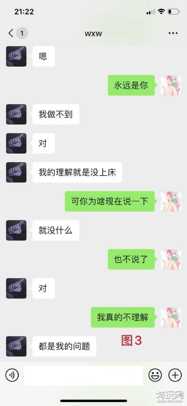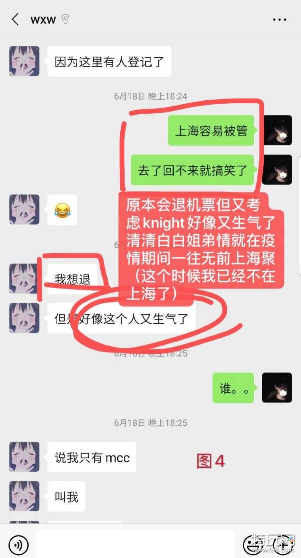 (图1-3是WXW和我的聊天截图,对应她说过knight曾抱怨WXW没有为了他去过上海,并且我也不明白“只要没上床”就可以瞒着我吗?)
