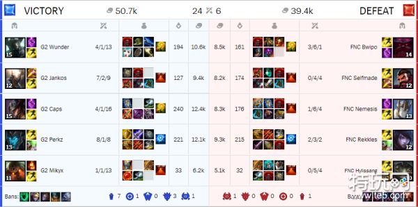 18分钟,FNC在河道草丛先手开团,G2根本不怂直接反打,铁男在前排犹如真神平推FNC,最终G2越中路两塔团灭FNC,Perkz卡莉斯塔拿下四杀!