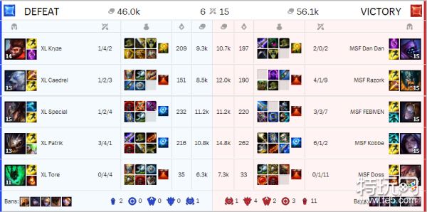 BP阶段,XL选出了卡牌大嘴和猴子狗熊,MSF则拿出了发条卡莎武器奥拉夫瑟提的冲阵体系。