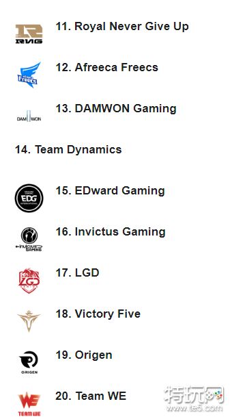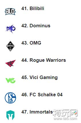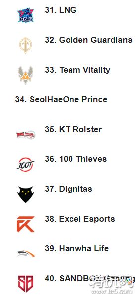 其他战队排名如下图所示(BLG、DMO、OMG、RW、VG分别排在41-45名)