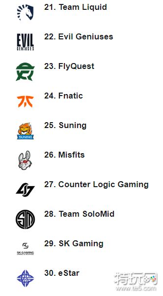ESPN战队排行榜 TES位居榜首JDG和FPX进入前十