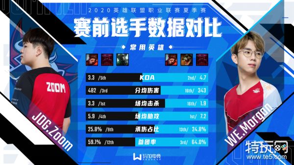 今天的第二场比赛将由春季赛冠军战队JDG,与目前积分榜排名第二的WE为我们带来一场精彩对决。在比赛开始之前,让我们先来看看两队上单选手的数据对比吧。