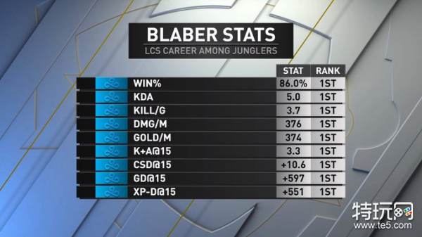 C9官方发布打野Blaber数据 所有数据均为第一名