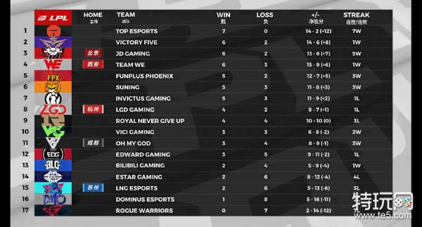 导读:LPL夏季赛赛后积分榜公布 WE和JDG进入前四名