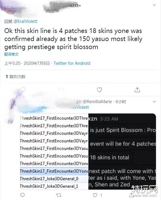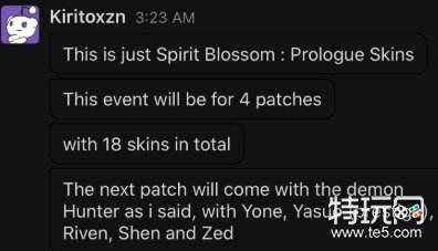 其中一个爆料称,下个版本迎来的皮肤将是永恩、亚索(至臻)、锐雯(出现在昨天莉莉娅的宣传片中)、慎和劫(慎和劫都是忍者,也符合这次绽灵节日系主题)