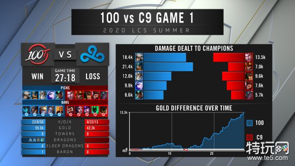 最终经过27分钟的鏖战,C9落后1W经济团战不敌100T迎来了失败,这也是Cloud9本赛季的首场失利