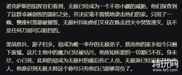 而无极剑圣故事中,当“无极”成为不可小觑的威胁时候,直接利用炼金技术毁灭整个村落,此时真的达到了所有人的:平等“。