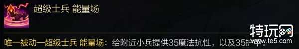 1.提升英雄12-48攻击力和20-80法术强度。2.全方位提升附近线上小兵的强度 获得的奖励移动速度等于所有附近冠军平均移动速度的90%,上限为500。 获得减速抵抗。 除了超级兵,所有小兵受到范围和持续伤害降低75%。