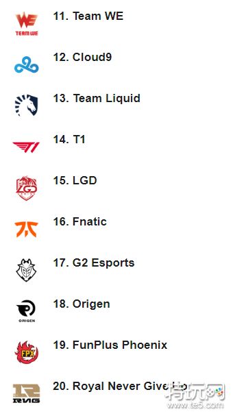 第11-20名:是有机会可以进入全球总决赛小组赛的队伍