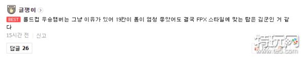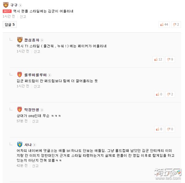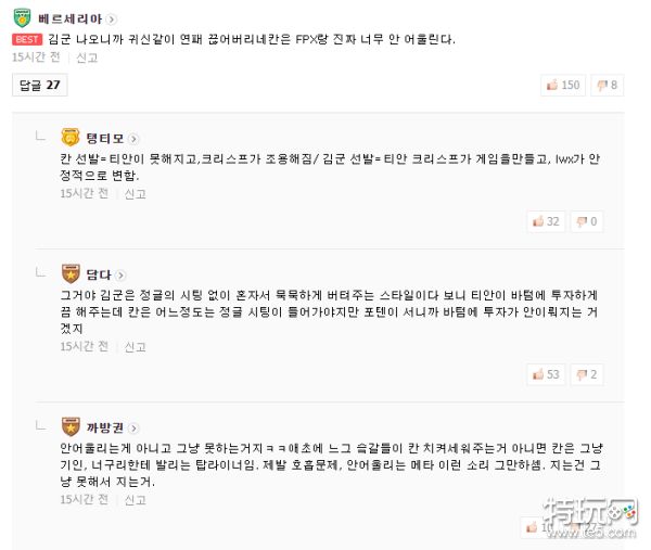 回复4:反正在Naver写评论的人根本就没看过LPL比赛,单凭着世界赛那会GimGoon和Khan正相反的形象就对他们的风格下定义,实际上连FPX引入Khan之后打没打上路都不知道hh。