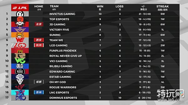 经过昨天的比赛,VG败给了EDG,FPX战胜了OMG,LPL积分榜再次发生里变化。