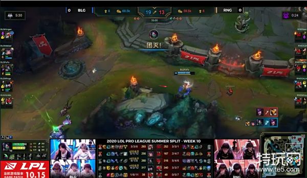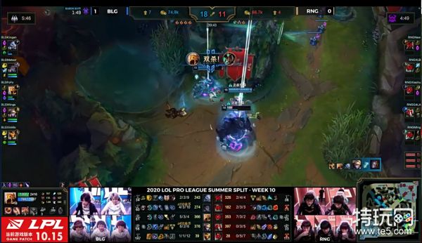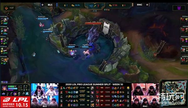 双方bo3第二局,蓝色方BLG,红色方RNG。