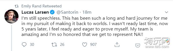 Santorin的上一次世界赛之旅还要追溯到2015年,当年他年仅18岁便随TSM进入世界赛。当时的队友还有Dyrus,Bjergsen,WildTurtle,Lustboy。当年TSM和OG,LGD,KT分到一组,但仅仅战胜LGD一场,以1-5黯然退出了那年的世界赛。今年他再次和WildTurtle打进世界赛,不可谓不励志。