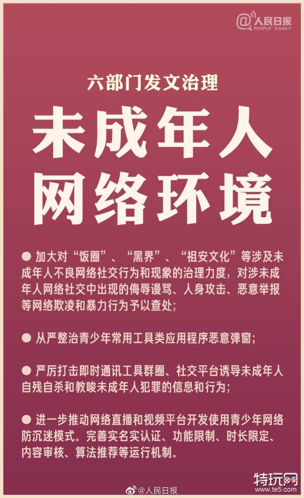 1、加大对饭圈黑界祖安文化治理力度,对涉未成年人网络社交中出现的侮辱谩骂、人身攻击、恶意举报等网络欺凌和暴力行为予以查处