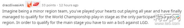 试想一下,你是一个外卡赛区的队伍,你一整年尽心地打比赛,终于拿到赛区唯一名额打进了世界赛入围赛阶段。然后你得在BO5赢下LGD才能进入正赛阶段。