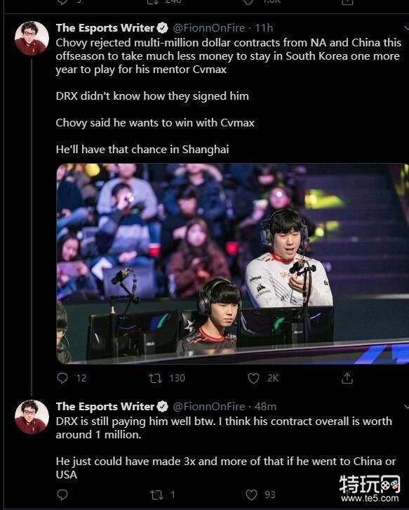 导读:外媒记者评Chovy 他本可赚到三倍年薪或更多