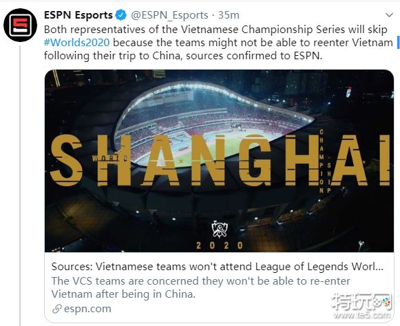 导读:ESPN更文透露 越南队伍或将无法参加S10世界赛