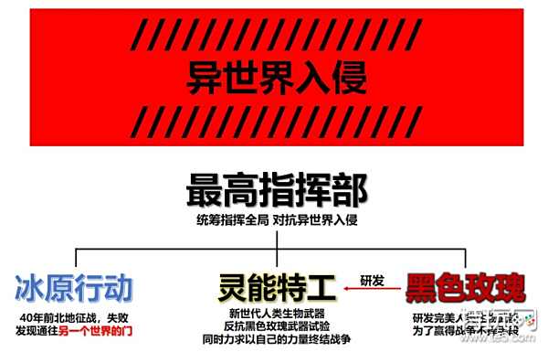 第四维度的战争,准备迎接入侵——最高指挥部。黑色玫瑰集团的实验将我扭曲改造,我会让他们尝到实验成功的滋味。——灵能特工 娑娜而黑色玫瑰对灵能力者的扭曲改造,和对实验对象惨无人道的做法,让灵能者们也不愿与之为伍。